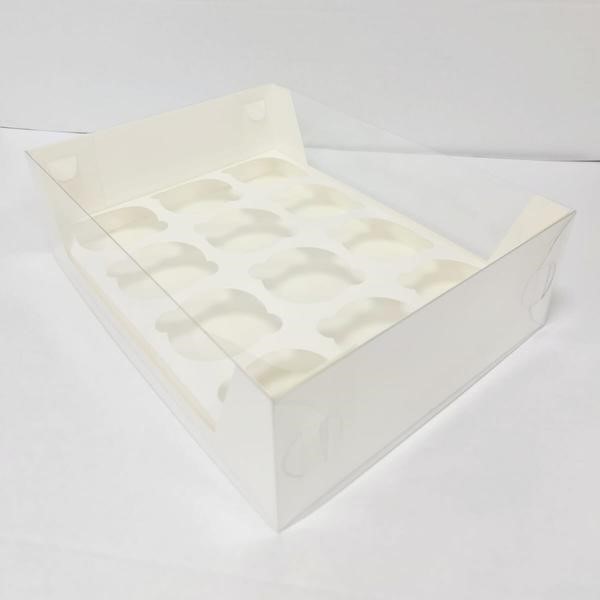 Коробка на 12 капкейков белая с пластиковой крышкой, 31х23,5х9,5 см